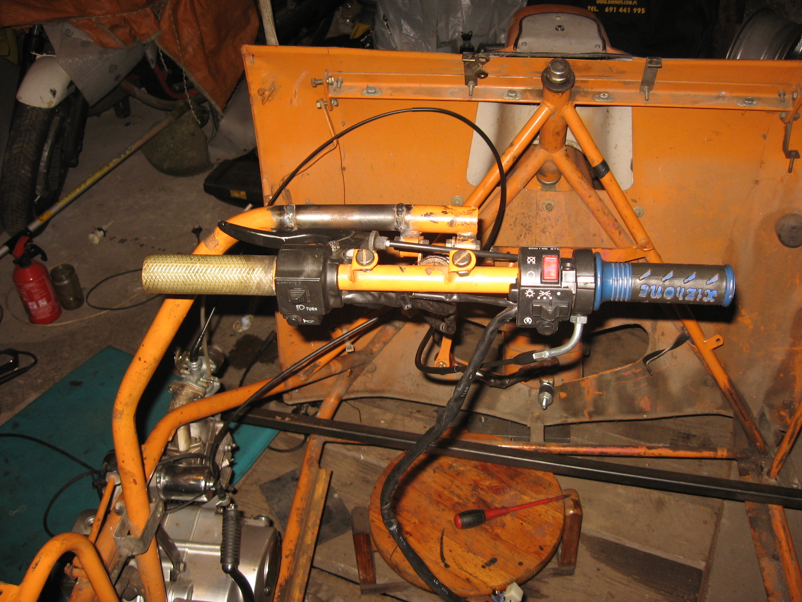 Na koniec pojazd zostanie rekarosowany (kabina sztywna), ale z uwzględnieniem widoczności na zewnątrz, mojego wzrostu i bez pułapek w stylu blachowkrętów celujących w skroń czy bark. Bak umieszczę w prawym błotniku. Błotniki DUO są podwójne, pod zewnętrznym jest sporo miejsca. Lewy jest zajęty przez system cięgien hamulców i elektrykę.