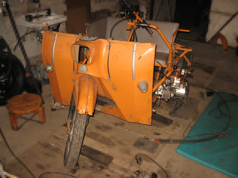 Akurat blisko i w miarę tanio trafiło się takie DUO, więc pojechaliśmy z bratem kupić to dziwadło. Zabudowane przez starszego pana sztywną budą, z szybami z plexi przykręcanymi na wystające do wnętrza blachowkręty, z zamkiem łazienkowym w drzwiach i masą „pijackich patentów”, po dłuższym grzebaniu odpaliło. kilkanaście km przejechało o własnych siłach, potem rozpoczęła się droga na uwięzi.