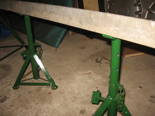 Sklepowe kobyłki opisywane jako „dwutonowe” lub „trzytonowe” wyglądają licho. Składane nóżki z blachy gną się na boki jak wiotka drabina. Niby „muszą wytrzymać”, atesty mają, ale przynitowane do korpusu nie budzą zaufania. Kto chciałby dostać w mordę pojazdem, pod którym leży? Las rąk widzę. Uspawałem sobie więc solidniejsze, o szerzej rozstawionych nóżkach i serdecznie polecam to samo.