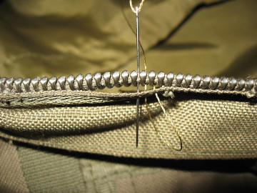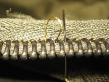 I z powrotem, uzupełniając fastrygę do stębnówki. Potem taką samą metdą drugi rząd, jak w zdrowej części zamka: