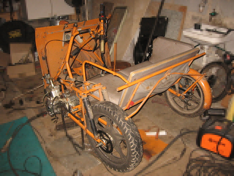 Pierwszym i oczywistym planem było wywalenie dwusuwa i wstawienie czegoś czterosuwowego. Kombinowałem nad symetrycznym napędem na oba tylne kola, z dyferencjałem, drzwiami z obu stron i silnikiem w tunelu, ale z braku czasu projekt umarł. Dyfer leży i czeka na lepsze czasy.