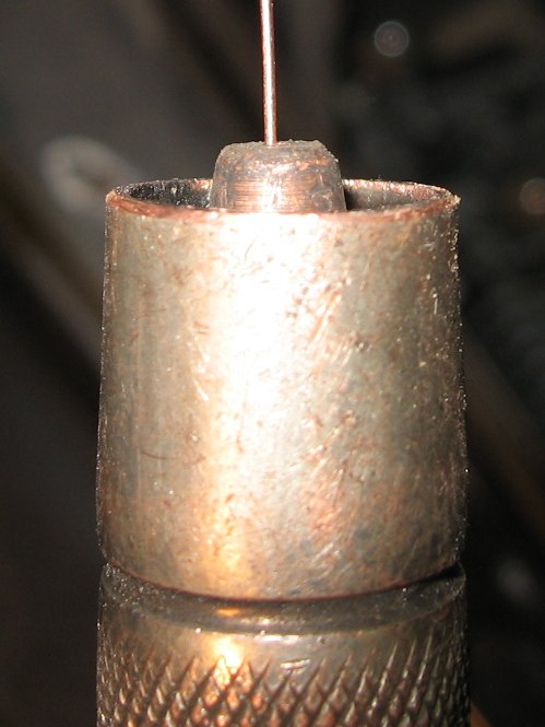 Opieram palnik końcówkami łuski wokół otworu, przyciskam aż otwór się wypełni, następny proszę