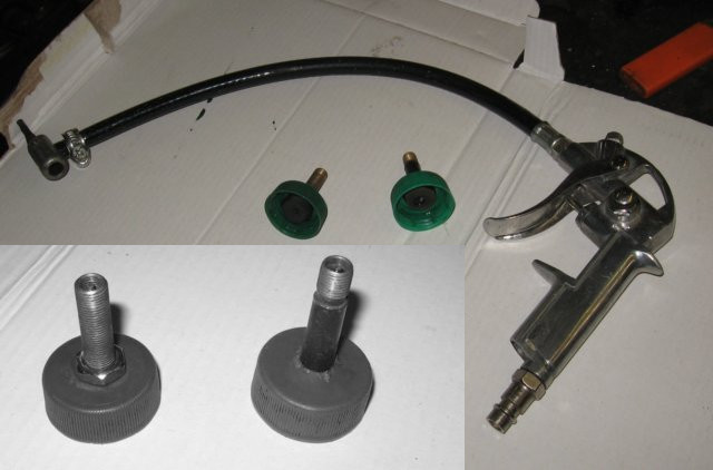 Pistolet do kół można pozbawić manometru. Kupiłem z uszkodzonym, więc zatkałem śrubą mosiężną przerobioną na korek: