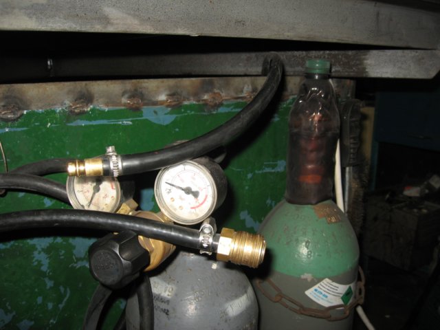 - Butla CO2 z reduktorem od „migomatu”. Mieszanki nie polecam :P Gaz można kupić medyczny/spożywczy (super czysty). U mnie punkt napełniania gaśnic innego nie sprzedaje a cena ta sama. Ze zwykłego gazu dla spawaczy czasem w wodzie zostaje charakterystyczny posmak „gruźliczanki” z saturatora. Ma swój klimat. Młodszym czytelnikom wyjaśni ciocia Wikipedia lub wujek Gugiel.